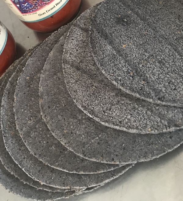 We're pleased to introduce our natural and authentic Blue Corn Tortillas made here in New Mexico. These are the best you'll find anywhere, so good in fact, that you can find them at our favorite restaurant, the SHED in Santa Fe. These delicious tortillas are hand made utilizing New Mexico Blue Corn, lime and water and with no additives, food coloring or preservatives. Gluten free.